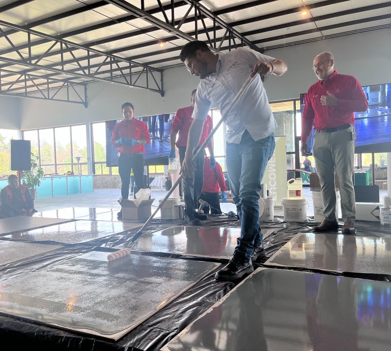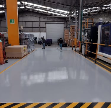 Diseñamos y mejoramos los pisos de concreto en superficies normativas y durables con productos especializados; Pisos Epoxicos, Uretanos cementicios, Poliuretanos y Acrilicos para naves, plantas y centros logísticos, considerando cargas reales, tráfico intenso y operaciónes futuras.